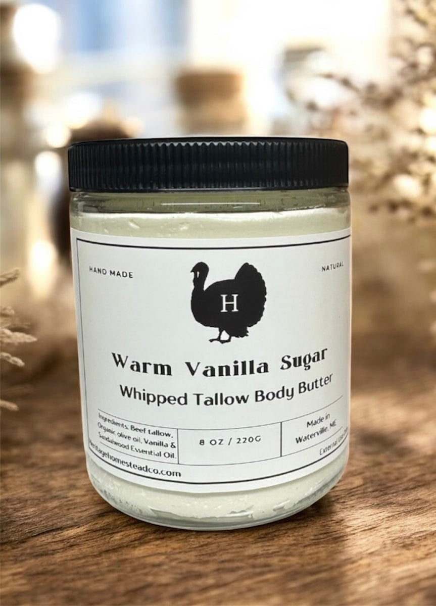 At Heritage Homestead Co., we hand-render our own beef tallow to craft pure, nourishing skincare for the whole family. Our gentle formulas support even the most sensitive skin, including eczema-prone and very dry skin. Naturally colored with beneficial ingredients like honey, clay, calendula, and seaweed, our products care for hair, skin, lips, and beyond — delivering timeless, trustworthy care from head to toe.